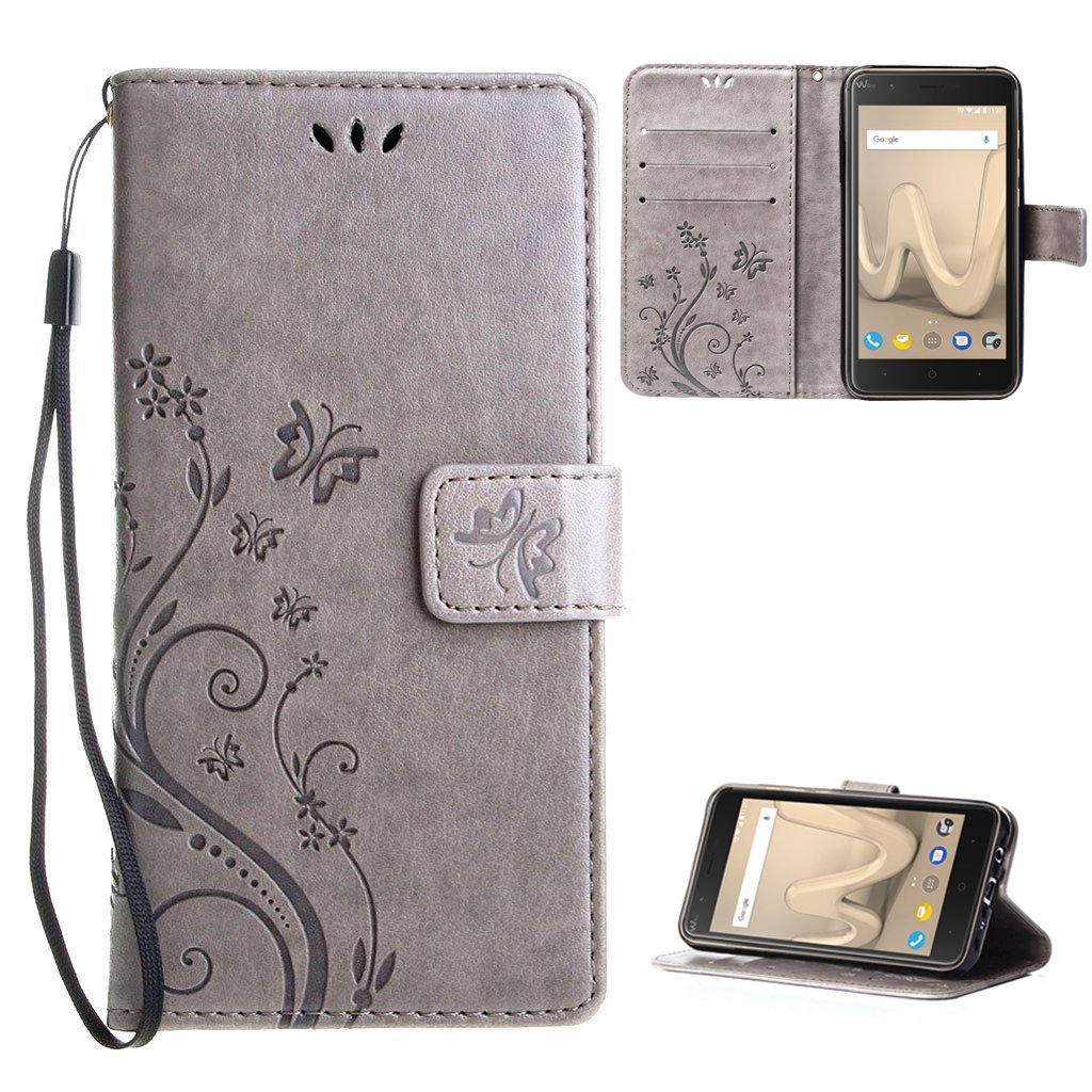 Custodia Wiko Harry Cover Grigio , Leathlux Retro Fiore Modello Design Con Cinturino da Polso Magnetico Snap-on Book style Internamente Silicone TPU Custodie Case in pelle Protettiva Flip Cover per Wiko Harry specificazione