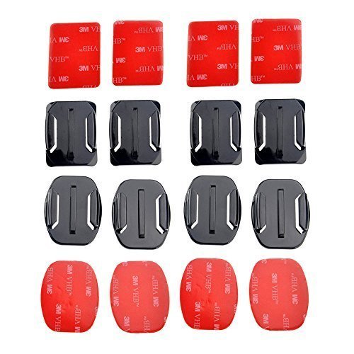 Ottimo kit di attacchi piatti e curvi. Ho applicato un attacco curvo al casco da moto, la curvatura era perfetta e anche il biasesivo é molto forte mentre un attacco dritto l'ho applicato sul bauletto della moto e devo dire che nonostante il bauletto fosse di plastica "porosa" e ruvida il biadesivo ha tenuto ottimamente. La confezione arriva con le plastiche e il biadesivo separati. Consiglio di attaccare prima il biadesivo sulla placchetta, premere con forza (magari agganciando la gopro e lasciando appoggiato su un piano come peso) e successivamente applicare le placche dove servono.